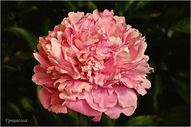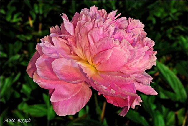 Принcесс Маргарет - Princess Margaret. (Муравска, 1960, США). Молочноцветковый. Махровый розовидный. Розовый. Диаметр цветка - 20 см. Высота куста - 80 см. Запах приятный. Ранне - средний срок цветения. |