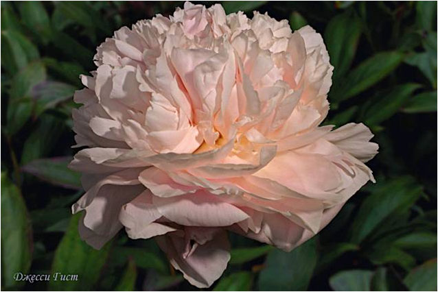 Джесси Гист - Jessie Gist. (Никольс - Уайльд, 1953, США). Молочноцветковый. Махровый розовидный. Розовый с лёгкими отметками красного. Диаметр цветка - 18 см. Высота куста - 70 см. Запах приятный. Ранне - средний срок цветения. |