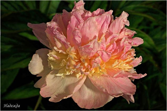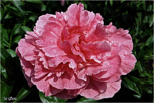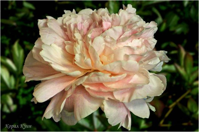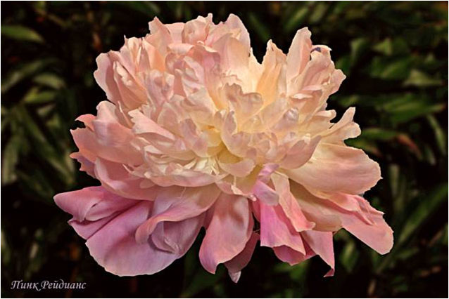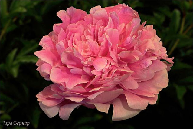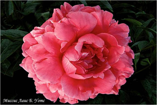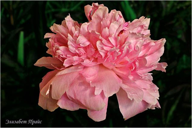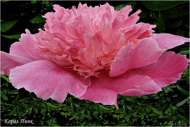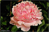 Корал Пинк - Coral Pinc. (Сасс, 1937, США). Молочноцветковый. Махровый - анемоновидный. Светло - розовый. Диаметр цветка - 13 см. Высота куста - 70 см. Запах слабый. Поздний срок цветения. |