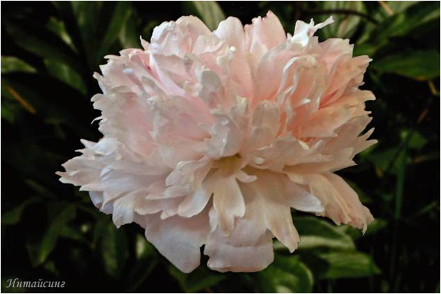 Исполин - Ispolin. (Харченко - Тыран, 1973, СССР). Молочноцветковый. Махровый розовидный. Розово - сиреневый. Диаметр цветка - 20 см. Высота куста - 120 см. Запах приятный. Средний срок цветения. |