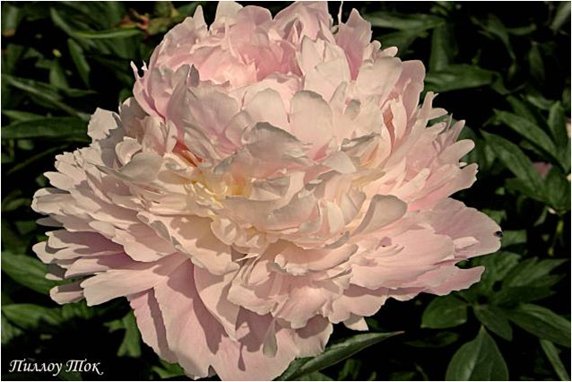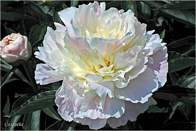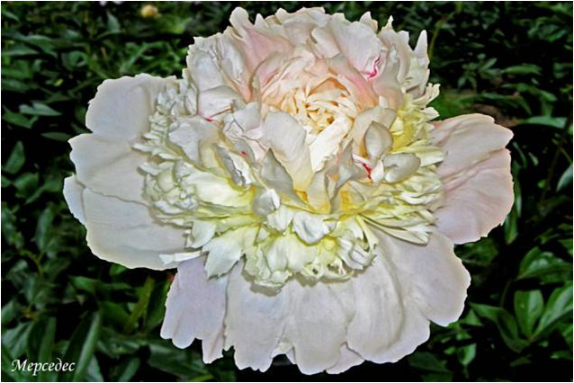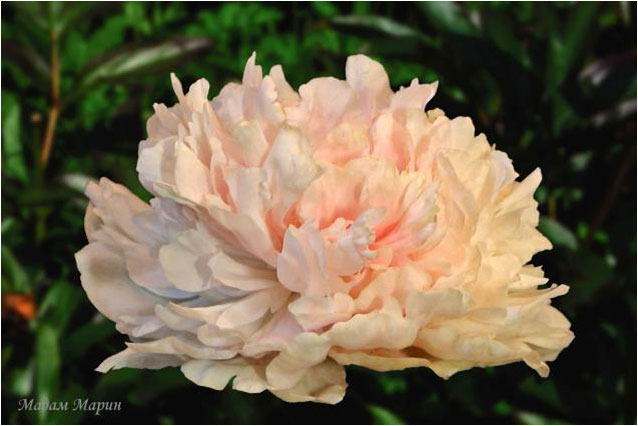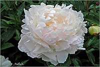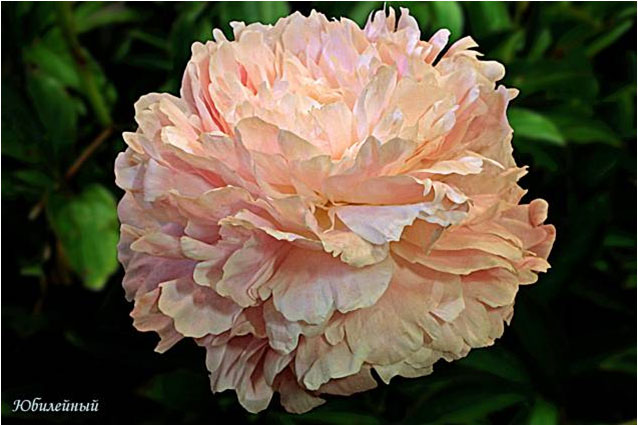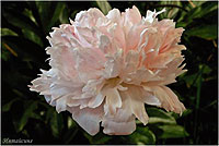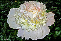 Юбилейный - Yubileynij. (Краснова, 1959, СССР). Молочноцветковый. Махровый розовидный. Светло - розовый, позднее почти белый. Диаметр цветка - 18 см. Высота куста - 90 см. Запах приятный. Средне - поздний срок цветения. |