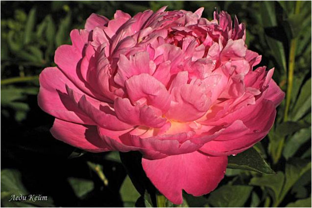 Леди Кейт - Lady Kate. (Ворис, 1924, США). Молочноцветковый. Махровый розовидный. Тёмно - розовый блестящий. Диаметр цветка - 14 см. Высота куста - 90 см. Запах слабый. Поздний срок цветения. |