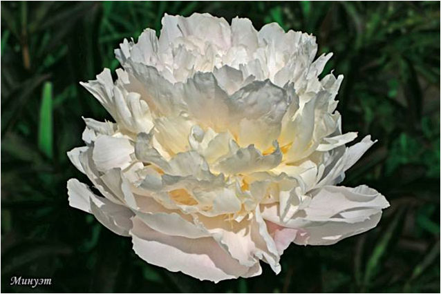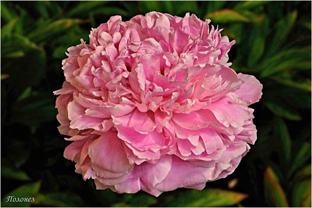 Полонез - Polonez. (Акимов, 1969, СССР). Молочноцветковый. Махровый розовидный. Светло - розово - сиреневый. Диаметр цветка - 18 см. Высота куста - 80 см. Запах приятный. Средне - поздний срок цветения. |