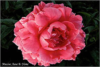 Маргарет Кларк - Margaret Clark. (Мейнс, 1956, США). Молочноцветковый. Махровый розовидный. Тёмно - розовый с серебристым отблеском. Диаметр цветка - 18 см. Высота куста - 80 см. Запах слабый. Средне - поздний срок цветения. |