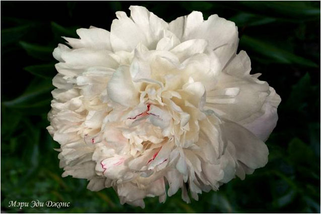 Мэри Эди Джонс - Mary Eddy Jones. (Никольс, 1961, США). Молочноцветковый. Махровый. Светло - розовый, возможны красные кончики лепестков. Диаметр цветка - 25 см. Высота куста - 80 см. Запах слабый. Средне - поздний срок цветения. |