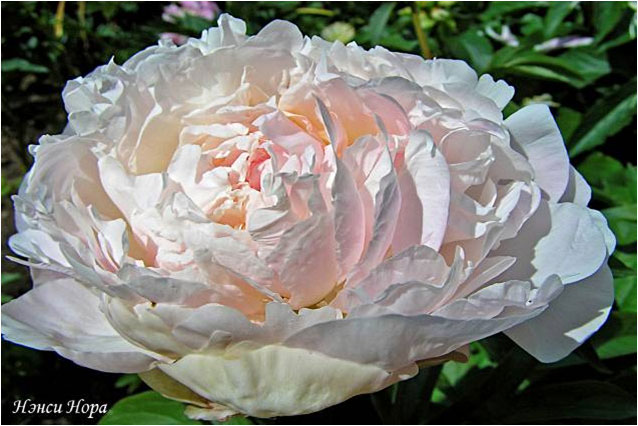Нэнси Нора - Nаncy Nora. (Бернстейн, 1942, США). Молочноцветковый. Махровый розовидный. Светло - розовый. Диаметр цветка - 16 см. Высота куста - 70 см. Запах приятный. Средний срок цветения. |