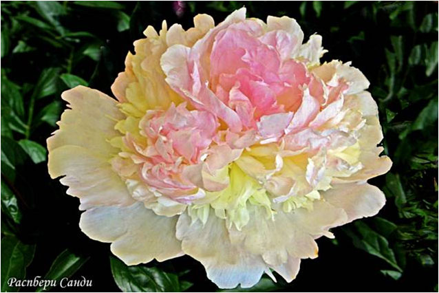 Распберри Санди - Raspberry Sundae. (Клем, 1968, США). Молочноцветковый. Махровый бомбовидный. Внешние лепестки светло - розовые, в короне розовые, центр кремовый. Диаметр цветка - 18 см. Высота куста - 70 см. Запах приятный. Средний срок цветения. |
