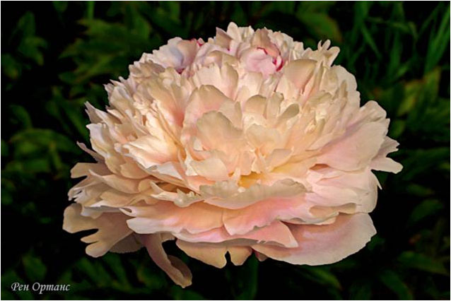 Рен Ортанс - Reine Hortense. (Кало, 1857, Франция). Молочноцветковый. Махровый розовидный - полушаровидный. Розово - кремовый с серебристыми кончиками лепестков. Диаметр цветка - 17 см. Высота куста - 100 см. Запах слабый. Средний срок цветения. |