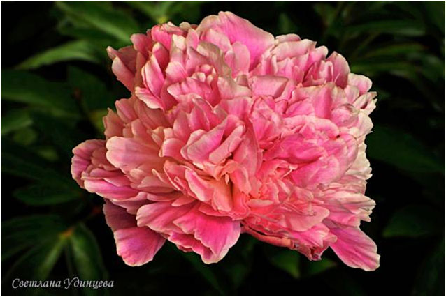 Светлана Удинцева - Svetlana Udintseva. (Дубров, 1995, СССР). Молочноцветковый. Махровый розовидный. Кремово - розовый с насыщением к центру. Диаметр цветка - 15 см. Высота куста - 80 см. Запах слабый. Поздний срок цветения. |