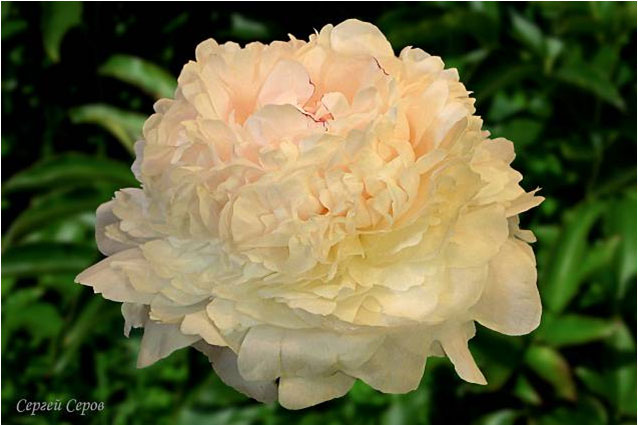 Сергей Серов - Sergey Serov. (Акимов, 1961, СССР). Молочноцветковый. Махровый розовидный. Светло - розовый. Диаметр цветка - 18 см. Высота куста - 80 см. Запах слабый. Средний срок цветения. |