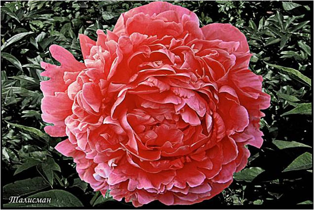Талисман - Talisman. (Харченко - Тыран, 1973, СССР). Молочноцветковый. Махровый розовидный. Карминно - розовый. Диаметр цветка - 18 см. Высота куста - 100 см. Запах слабый. Средний срок цветения. |