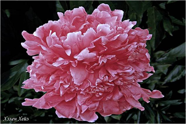 Хэлен Хейс - Helen Hayes. (Муравска, 1943, США). Молочноцветковый. Махровый розовидный - бомбовидный. Тёмно - розовый. Диаметр цветка - 15 см. Высота куста - 70 см. Запах слабый. Средний срок цветения. |