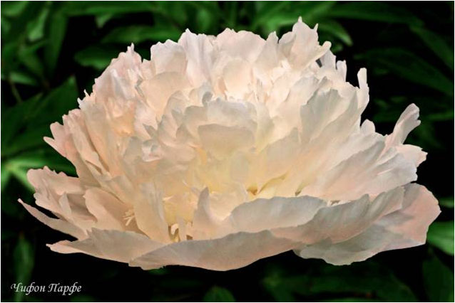 Чиффон Парфе - Chiffon Parfait. (Клем, 1981, США). Молочноцветковый. Махровый розовидный. Цвета бледно - розовой раковины. Диаметр цветка - 16 см. Высота куста - 80 см. Запах слабый. Поздний срок цветения. |