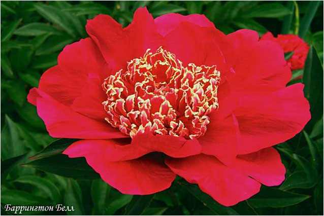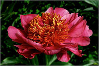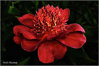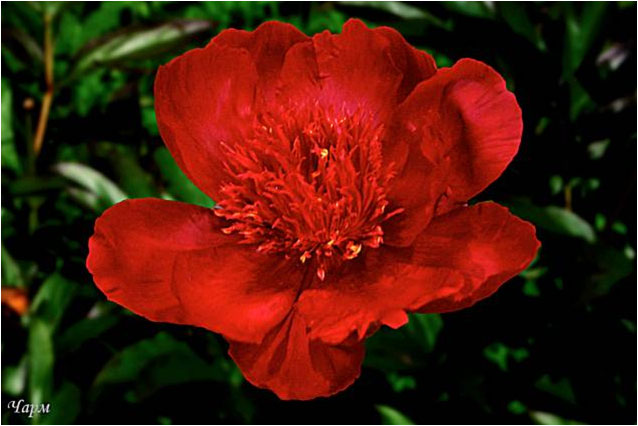 Чарм - Charm. (Франклин, 1931, США). Молочноцветковый. Японской формы. Тёмно - красный, стаминодии того же цвета с жёлтыми кончиками. Диаметр цветка - 14 см. Высота куста - 80 см. Запах слабый. Поздний срок цветения. |