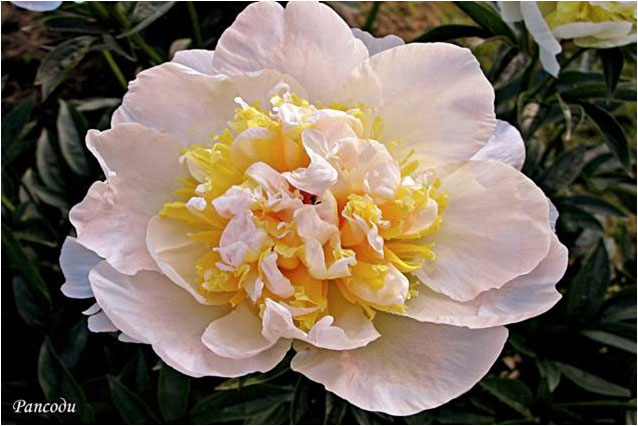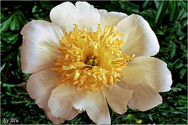 Бу Ти - Bu Te. (Вассенбергер, 1954, США). Молочноцветковый. Японской формы. Светло - кремовый, стаминодии жёлтые. Диаметр цветка - 16 см. Высота куста - 90 см. Запах приятный. Средне - поздний срок цветения. |