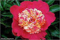 Нелли Сейлор - Nellie Saylor. (Креклер, ?, США). Молочноцветковый. Анемоновидной формы. Красно - винный, петалодии бело - красные. Диаметр цветка - 14 см. Высота куста - 70 см. Запах слабый. Средний срок цветения. |