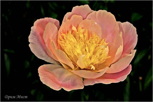 Дрим Мист - Dream Mist. (Уайльд, 1970, США). Молочноцветковый. Японской формы. Светло - розовый, стаминодии светло - жёлтые. Диаметр цветка - 15 см. Высота куста - 80 см. Запах приятный. Средний срок цветения. |