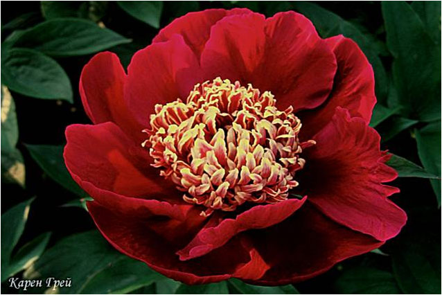 Карен Грей - Caren Gray. (Креклер, 1965, США). Молочноцветковый. Японской формы. Тёмно - карминный бархатистый, стаминодии светло - розовые с кремовыми краями. Диаметр цветка - 14 см. Высота куста - 70 см. Запах слабый. Средний срок цветения. |