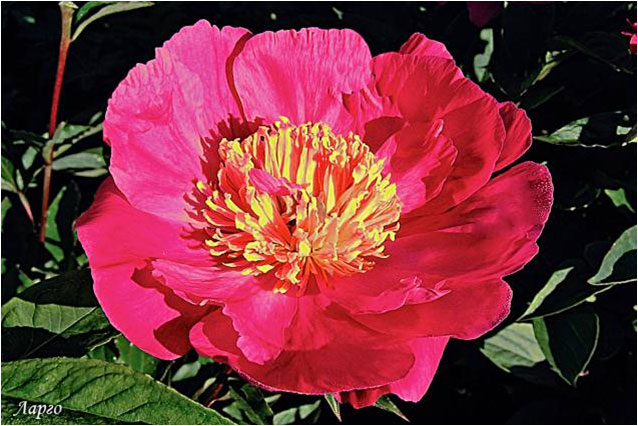 Ларго - Largo. (Ворис, 1929, США). Молочноцветковый. Японской формы. Тёмно - розовый, стаминодии жёлтые. Диаметр цветка - 18 см. Высота куста - 100 см. Запах слабый. Средний срок цветения. |