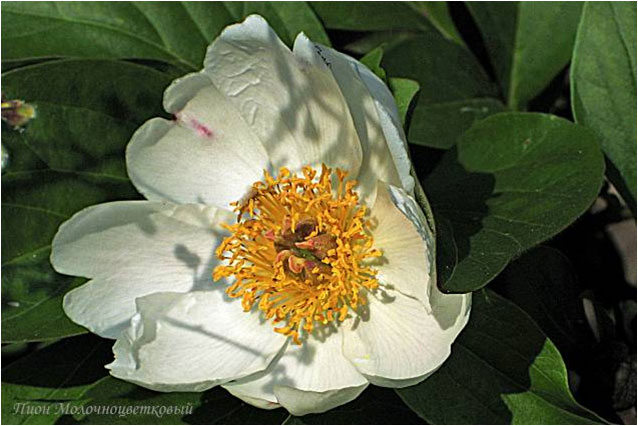 Пион Молочноцветковый - P. lactiflora Pall. (, , ). Видовой. Простой формы. Белый. Диаметр цветка - 9 см. Высота куста - 60 см. Запах слабый. Ранний срок цветения. |